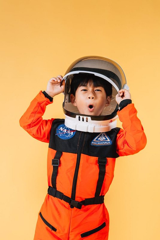 - Kostým kosmonauta tvoří jeden díl kombinézy se zipem na přední straně a helma