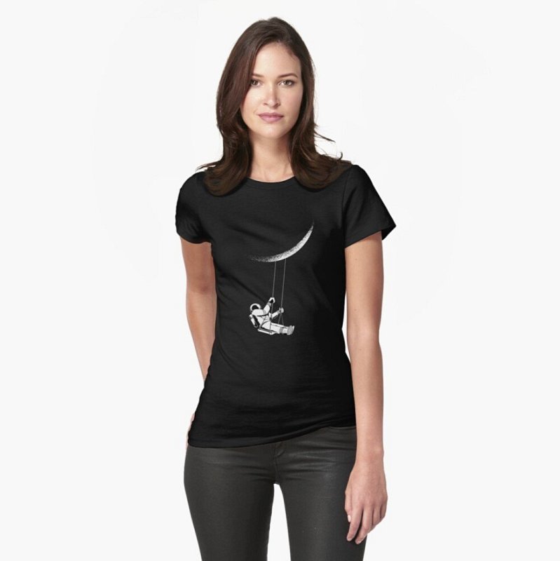 Elegantní tričko s vkusným potiskem pro dámy, které milují vesmír. Tričko dámského vypasovaného střihu s motivem kosmonauta a Měsíce.